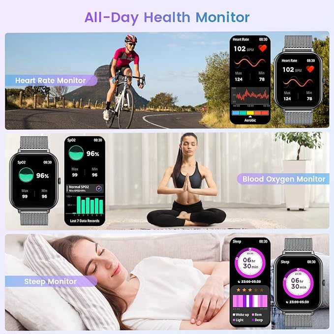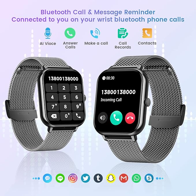 - Answering/Making Call & AI Voice Assistant: Smart watch for women is equipped with HD speaker, advanced Bluetooth technology, after connecting to your phone via Bluetooth, you can directly use the smartwatches to answer or make calls. You will never miss any calls and messages during workout and riding. The smartwatch is equipped with an AI voice assistant. Click 'Voice Assistant' on the watch, then you can voice control the phone to make calls, search information, play music and enter any app.