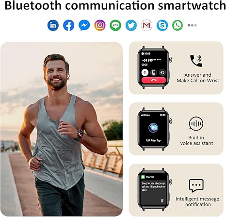 • 👍 【Bluetooth Hands-Free Calls & AI Voice Assistant】Fitness tracker for men women come with HiFi stereo speakers and a microphone will helps you from hands-free multitasking. Connect via Bluetooth to answer or make calls directly, Use the 'Da Fit' app to store contacts and receive Texts and instant app notifications for calls and messages from WhatsApp, Facebook, Instagram, and more. Interact effortlessly with the AI voice assistant for tasks like checking weather, making calls, or setting alarms.
