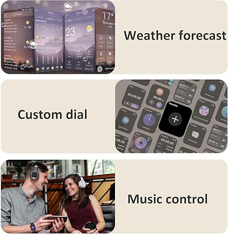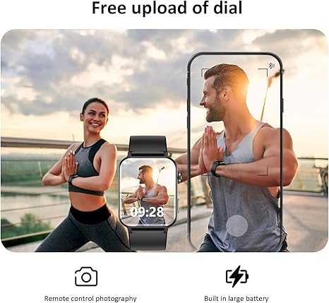 • 🎁【Ideal Gift for Family and Friends】The smart watches for men women offers versatile functions including music and camera controls, games, weather forecasts, and more, making it an excellent daily and travel assistant. Smart Watch for Android Phones iPhone compatable,seamlessly connects with Android 6.0+ and iOS 9.0+ smartphones. Ideal for gifting to family and friends, or treating yourself as activity trackers coach. Also our smart watch is an "FSC-certified case and bracelet. (**Note: Please read the description area before making your purchase.)