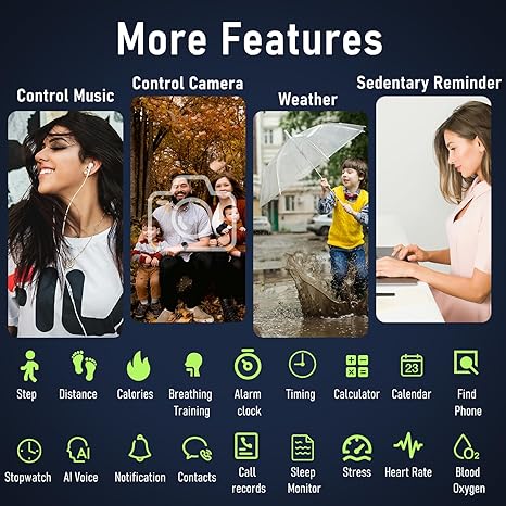 | Special Feature | Battery Capacity: 350Milliamp Hours, Fitness Tracker, Phone Call, Notifications, Sleep Monitor, Blood Oxygen Monitor, Heart Rate Monitor, Calorie Tracker, Alarm Clock, Stopwatch, Timer, Pedometer, Camera Control, Music Playback/Control, Weather Forecast, Sedentary Reminder |