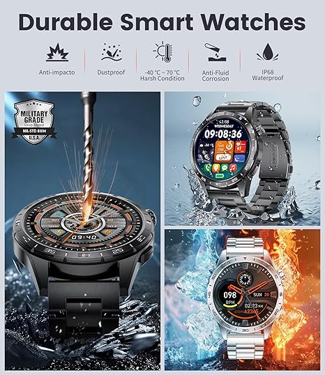 • 🏆【400mAh Battery & IP68 Waterproof】This waterproof smart watches for men features a 400mAh large-capacity battery, which can be fully charged in just 2 hours and provide 3-5 days of standby time in normal working conditions, or up to 20 days in low-power mode. You won't need to worry about battery life even during outdoor activities. Made of 316 stainless steel, the outdoor smart watch is IP68 waterproof, protecting it from sweat, dust, and scratches. It's safe to use in various environments, including exposure to rain during outdoor activities.